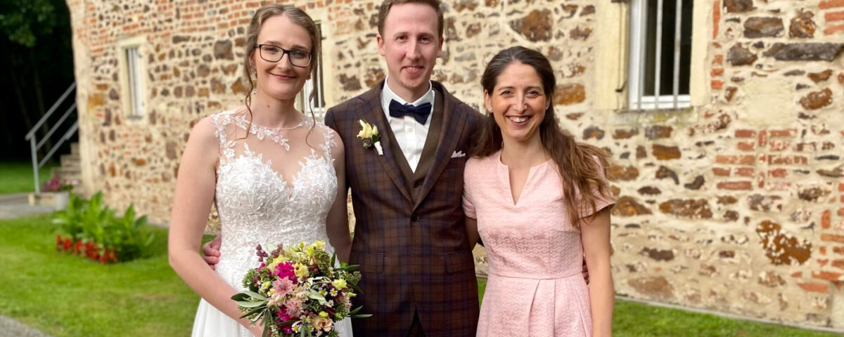 Zum anderen war es für mich sehr berührend, nachdem ich vor einigen Jahren meine Position als Standesbeamtin gekündigt habe, meinem alten Arbeitsplatz auf Schloss Sythen erneut zu begegnen. In dieser kleinen zauberhaften Kapelle durfte ich nun als freie Traurednerin die Liebe eines Brautpaar besiegeln .